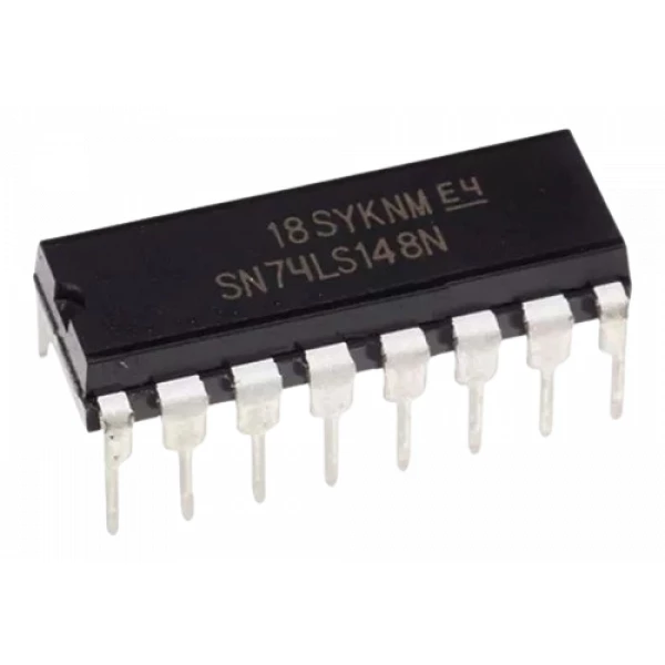 El 74LS148 es un codificador prioritario de 8 a 3 líneas que opera con entradas y salidas activas en nivel lógico bajo. Su diseño incluye un circuito en cascada (entrada EI y salida EO) que permite la conexión de múltiples codificadores para manejar más entradas. Con su encapsulado DIP de 16 pines, este integrado es fácil de integrar en prototipos y circuitos electrónicos.