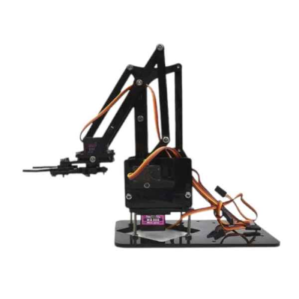 El brazo robótico de acrílico es un kit educativo ideal para proyectos de robótica, automatización y aprendizaje de control por microcontroladores. Es totalmente compatible con Arduino y otras plataformas de desarrollo con salidas digitales o PWM, lo que permite controlarlo fácilmente mediante servomotores estándar.