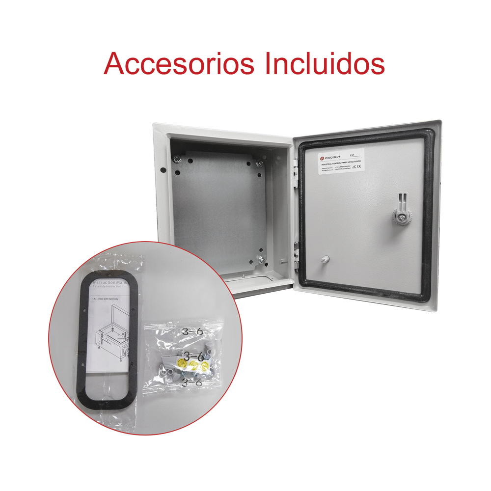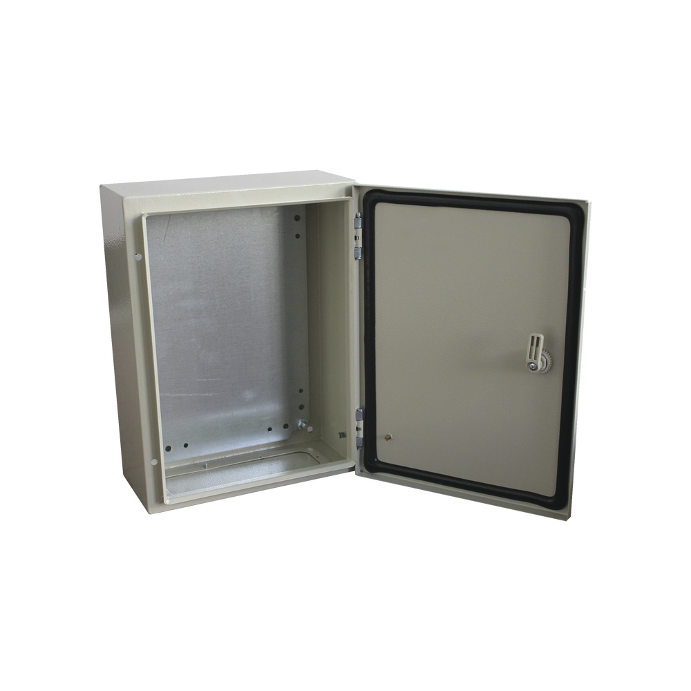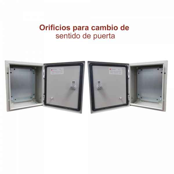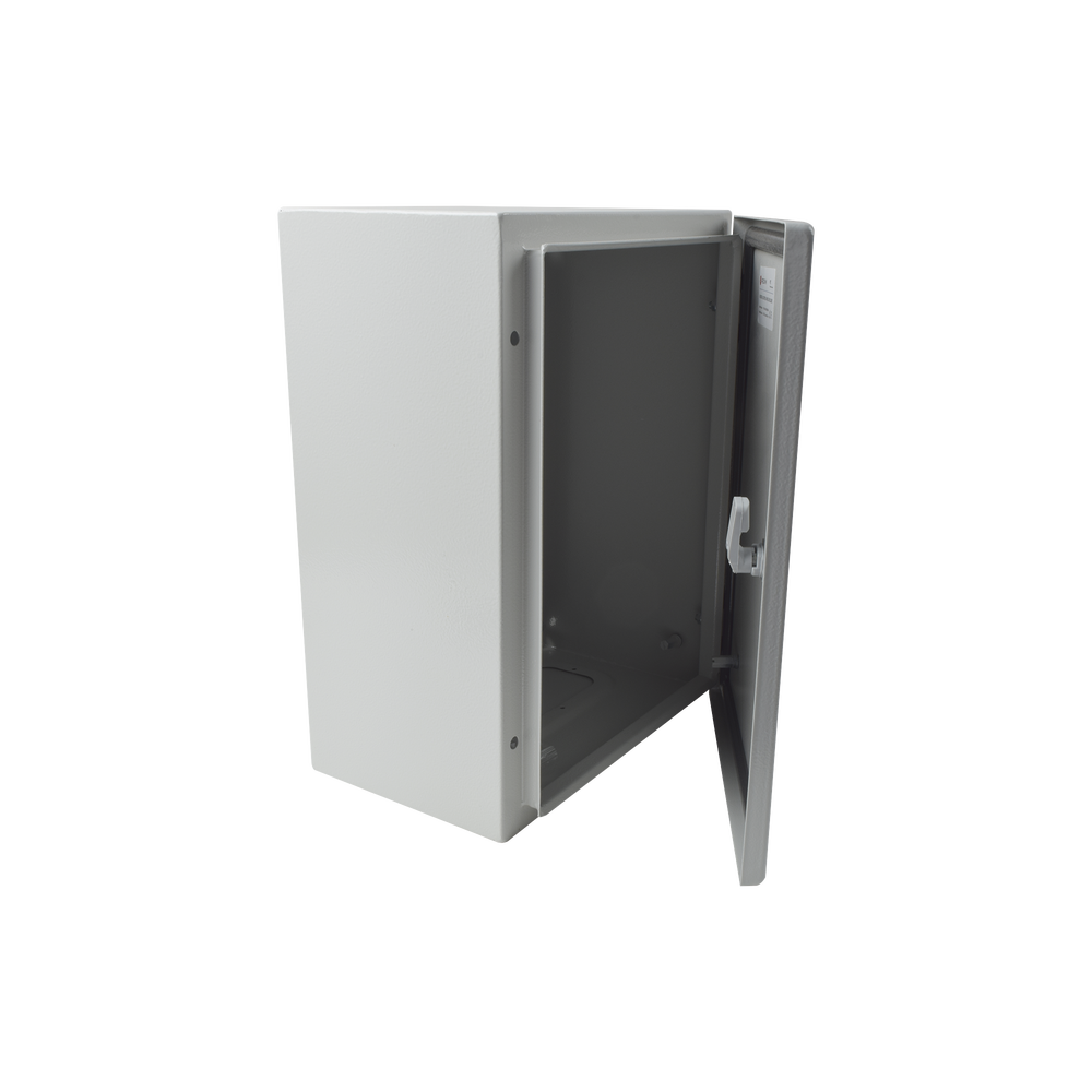 El gabinete de acero IP66 está diseñado para proteger equipos eléctricos y electrónicos en entornos de intemperie, ofreciendo alta resistencia contra lluvia, polvo e impactos. Incluye placa trasera interior metálica, compuerta inferior atornillable y cerradura con llave tipo T para mayor seguridad.