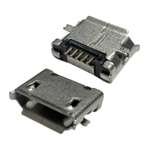 Conector micro USB 5 pines, montaje superficial, normalmente utilizado como pin de carga para teléfonos, tablet y otros dispositivos.
