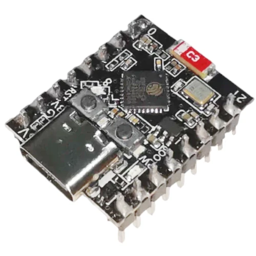 El módulo Mini ESP32-C3 con conector USB Tipo C es una placa de desarrollo compacta basada en el microcontrolador ESP32-C3 de bajo consumo, ideal para aplicaciones de IoT, automatización y dispositivos inteligentes. Este módulo integra conectividad WiFi y Bluetooth 5.0, facilitando el desarrollo de proyectos inalámbricos en espacios reducidos. Incorpora botón de reinicio y modo boot, además de encabezados macho para una fácil conexión en protoboards o sistemas embebidos.