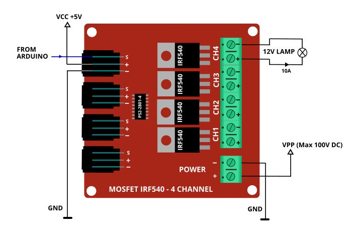 Módulo Controlador PWM de 4 Salidas – Alta Potencia