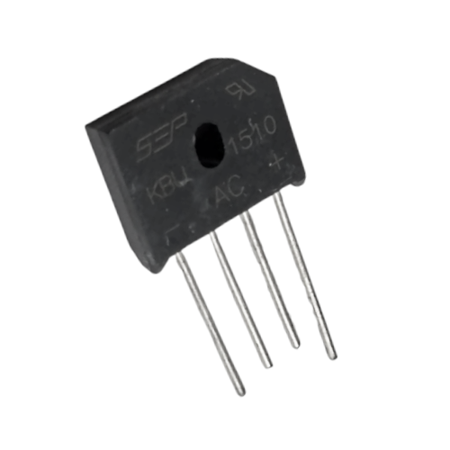 El KBU1510 es un puente rectificador de alta potencia diseñado para convertir corriente alterna (CA) en corriente continua (CD) de forma eficiente y confiable. Es ampliamente utilizado en fuentes de alimentación, cargadores, equipos industriales y proyectos electrónicos que requieren manejo de alto voltaje y corriente.