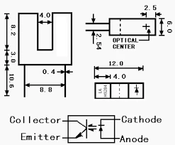 Este sensor funciona mediante la interrupción de un haz de luz infrarroja dentro de una ranura, lo que permite detectar objetos o medir la rotación de discos codificados en aplicaciones de encoders ópticos.