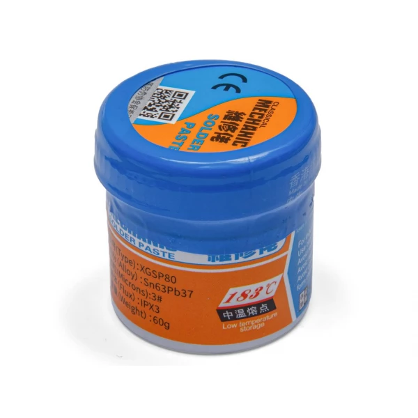 La soldadura en pasta Mechanic 60g es un producto de alta calidad diseñado para trabajos de precisión en soldadura electrónica. Gracias a su fórmula química avanzada, proporciona una excelente humectación y adhesión, garantizando una soldadura confiable, uniforme y brillante.