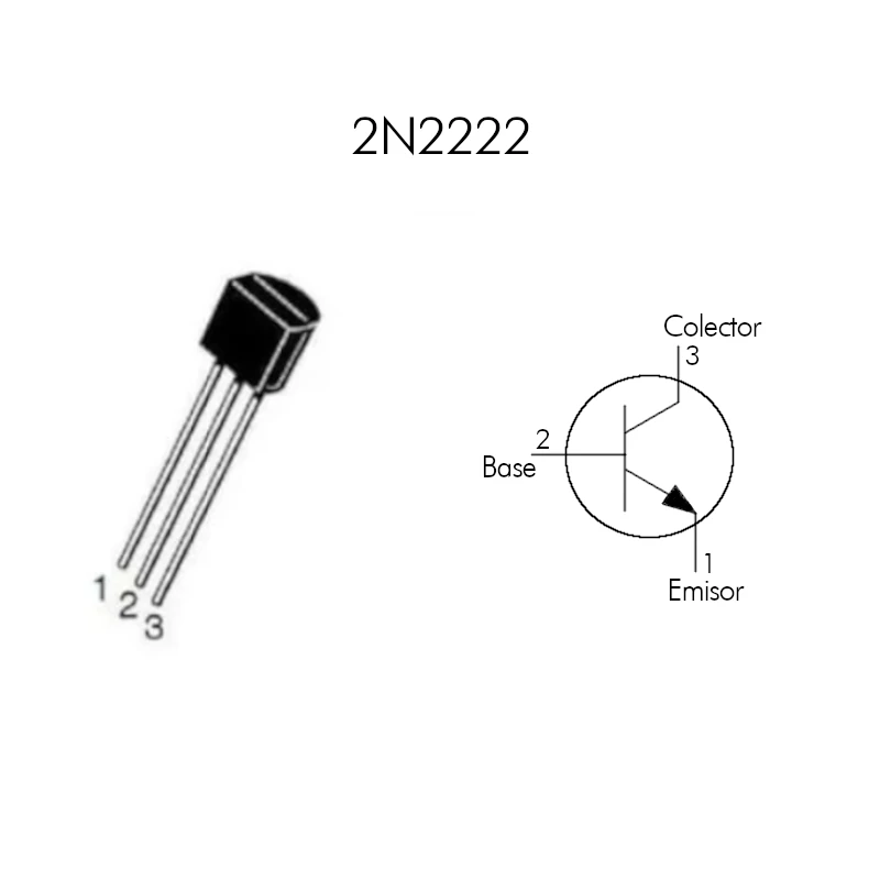 El 2N2222 es un transistor BJT (Bipolar Junction Transistor) de tipo NPN, diseñado para amplificación y conmutación de señales de voltaje o corriente. Este transistor es ampliamente utilizado en circuitos de baja y media potencia, incluyendo amplificadores, osciladores y circuitos de conmutación.