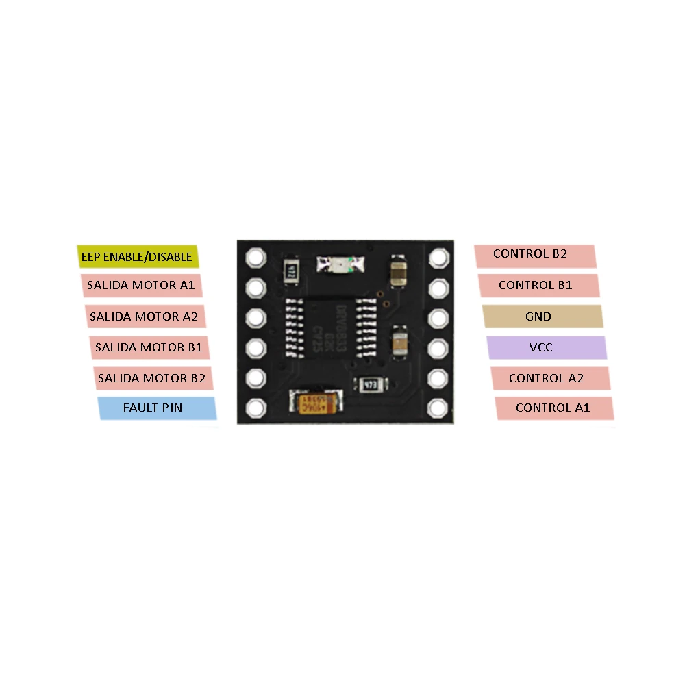 - Conecta cada motor a las salidas del driver (observa polaridad para probar dirección).